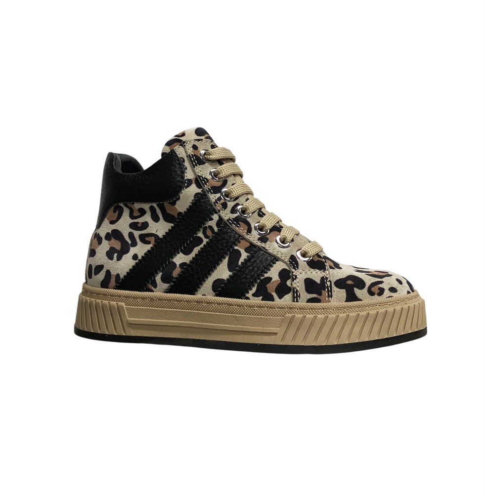 Ботинки демисезонные для девочек, цвет бежевый/черный (принт), молния/шнурки