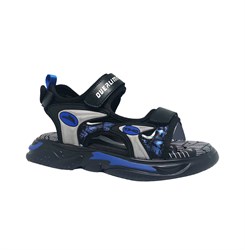 Сандалии для мальчика, цвет черный/синий, открытые нос и пятка, на липучках