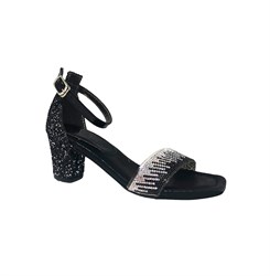Туфли для девочки, цвет черно-серебристый, с открытым носом