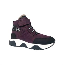 Ботинки для девочки, цвет серый/бордовый (узор), на липучках, мембрана