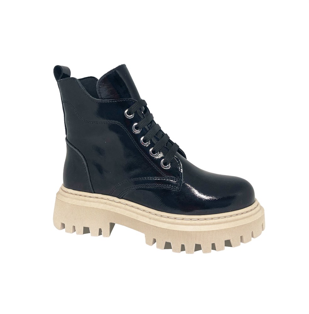 Ботинки в стиле CASUAL выполнены из натуральной лаковой кожи. Обхват ножки регулирует шнуровка. Для удобства есть застежка-молния. Подкладка обуви байка. Температурный режим: +10 до -5 градусов.