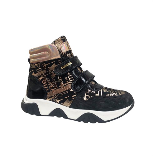 Ботинки демисезонные для девочки, цвет золотистый/черный (принт), липучки