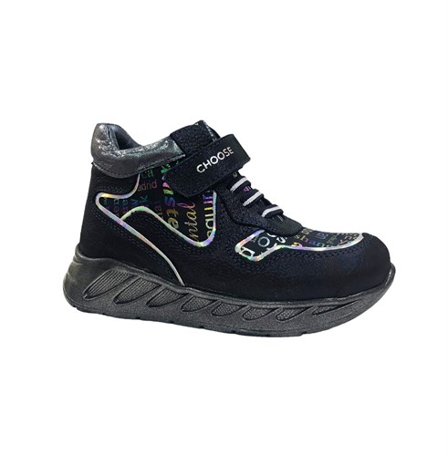 Ботинки для девочки, цвет синий (принт буквы), шнурки/липучка