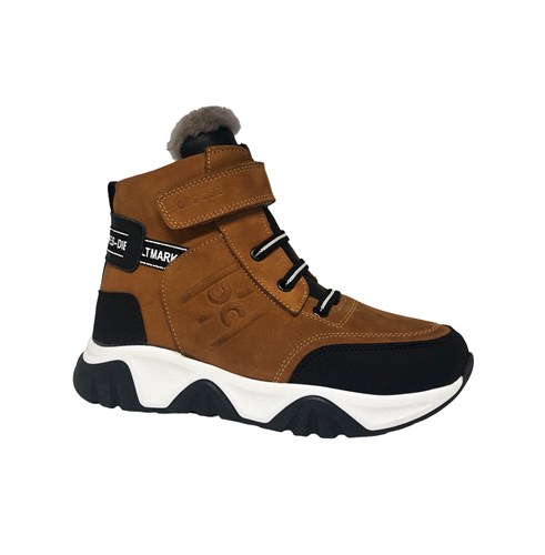 Ботинки для мальчика, цвет горчичный/черный, липучка/шнурки