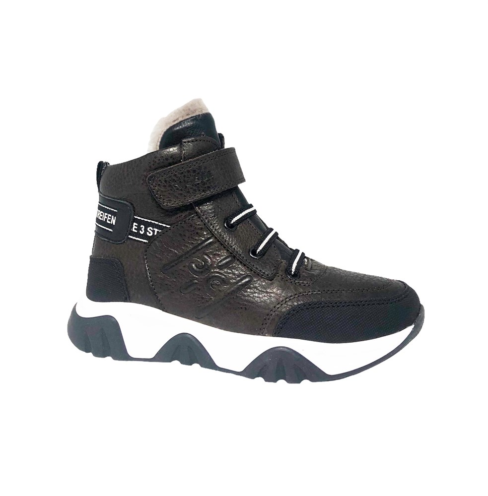 Стильные зимние ботинки из натуральной кожи. Утеплены натуральным мехом. Удобная двойная застежка - шнуровка+липучка, позволяет легко отрегулировать посадку обуви по ноге. Протекторная подошва с высоким рантом не скользит и не промерзает. Отличный вариант для долгой зимы.