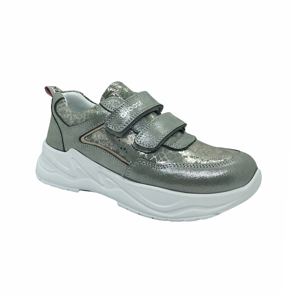 Кроссовки для девочки, цвет серебристо-серый (принт), на липучках