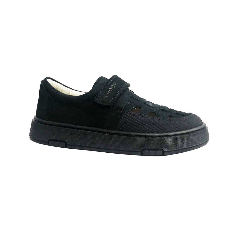 Школьные туфли для мальчика, цвет: черный (нубук), липучка