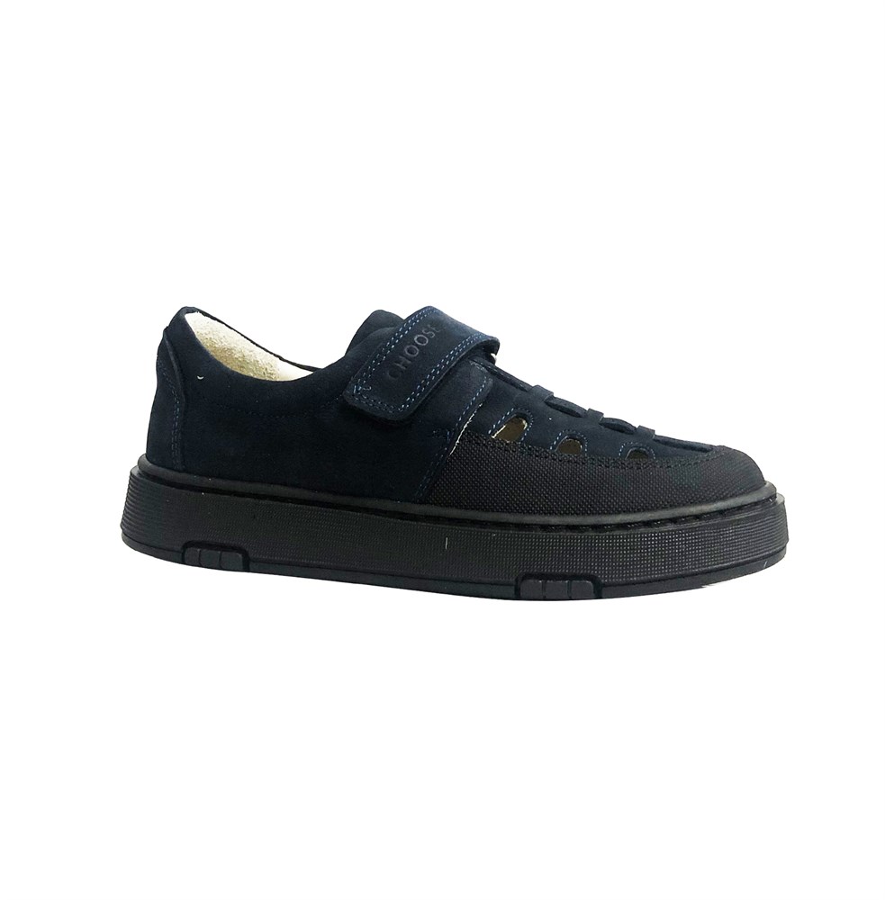 Школьные туфли для мальчика, цвет: темно-синий (нубук), липучка