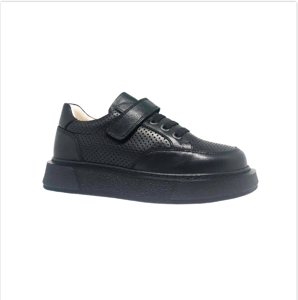 Школьные туфли для подростка, цвет: черный (натуральная кожа), перфорация, липучка/шнурки