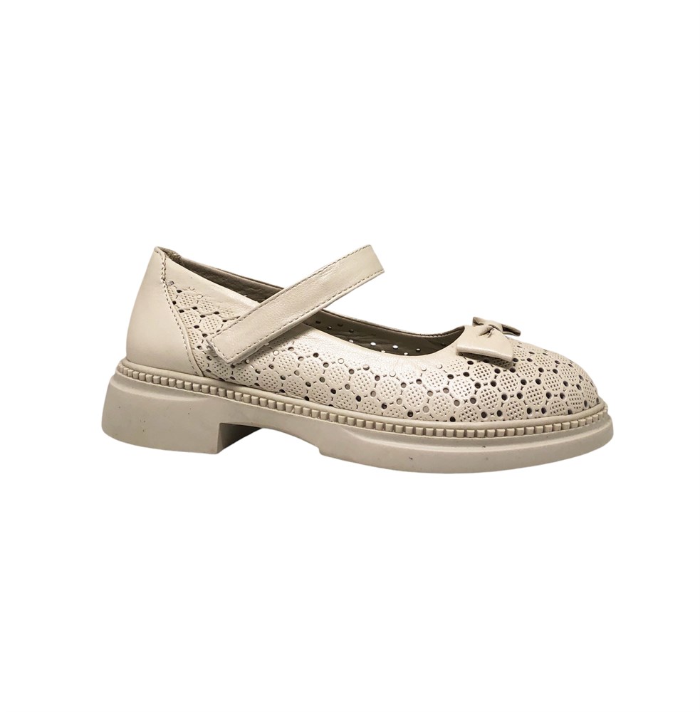 Туфли для девочки, цвет бежевый (бантик), на липучке,перфорированные